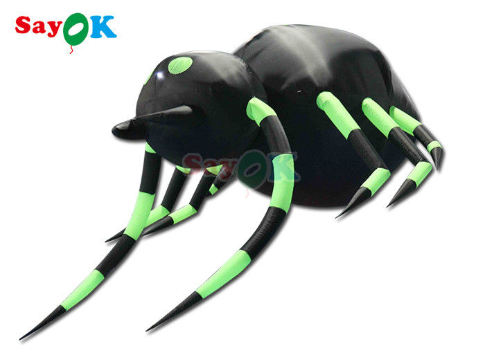 Decoração de Halloween horrível de aranha inflável preta e verde